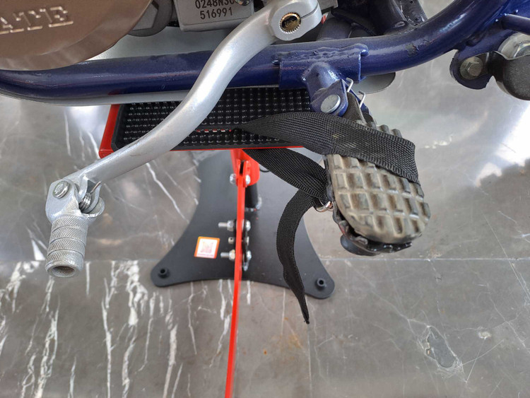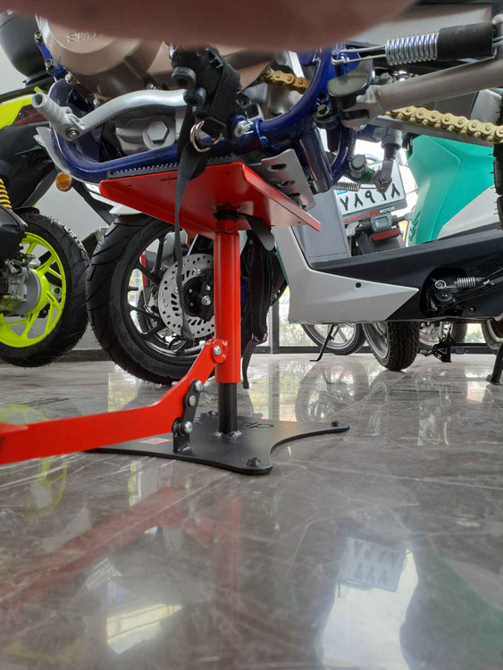 ●دارای دو کمربند برزنتی در دو طرف سینی استند که بوسیله آنها میتوانید از قسمت جاپایی موتور را به استند فیکس کنید و نگران افتادن موتور از چپ و راست نباشید.