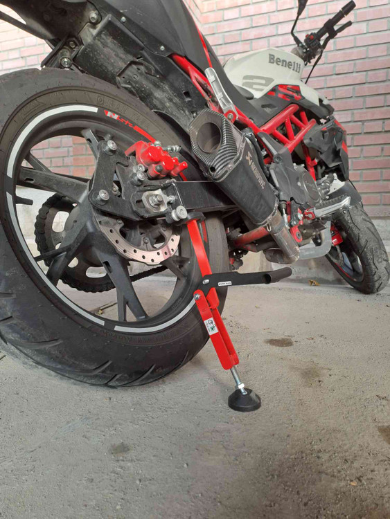 جک یکطرفه موتورسیکلت به شما کمک میکند بدون کمک و به تنهایی چرخ موتور سیکلت را از زمین بلند کرده و براحتی زنجیر موتورسیکلت را سرویس کنید.