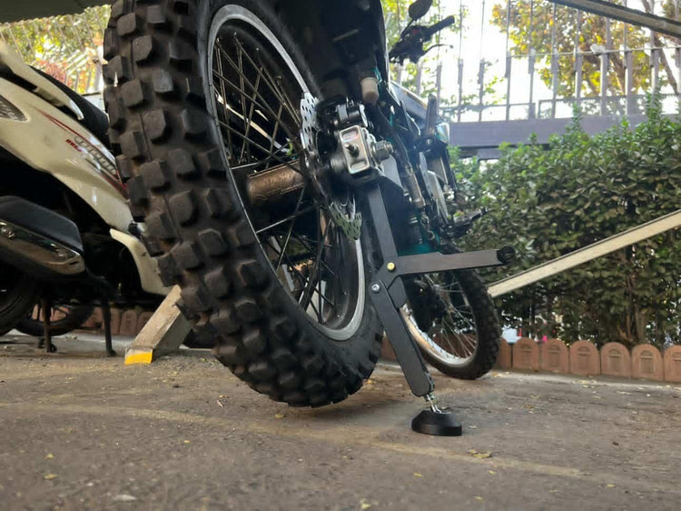 بند چسبی همراه آن برای بستن ترمز جلو و جلوگیری از حرکت موتور در نظر گرفته شده است .