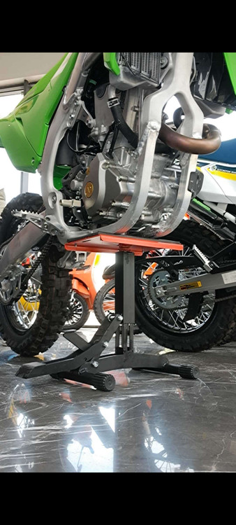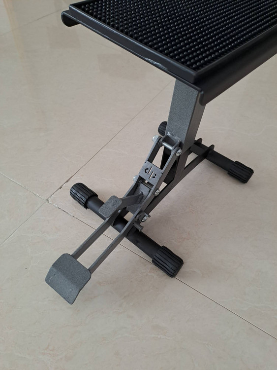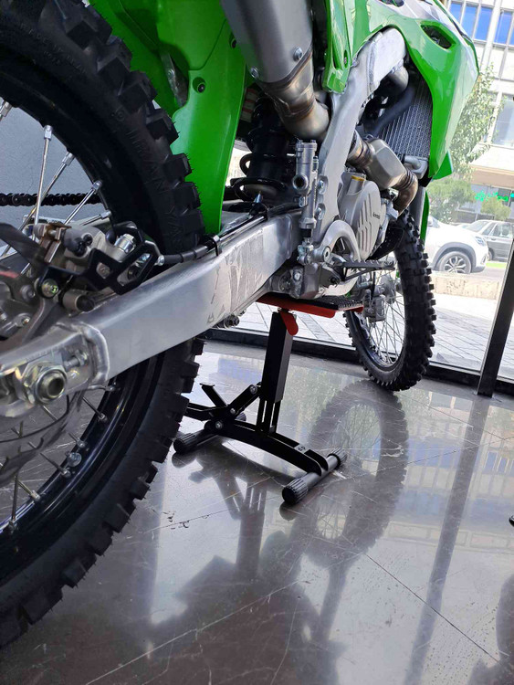 با فشردن پدال کوچک جک آزاد میشود و میتوان موتورسیکلت را پایین آورد
