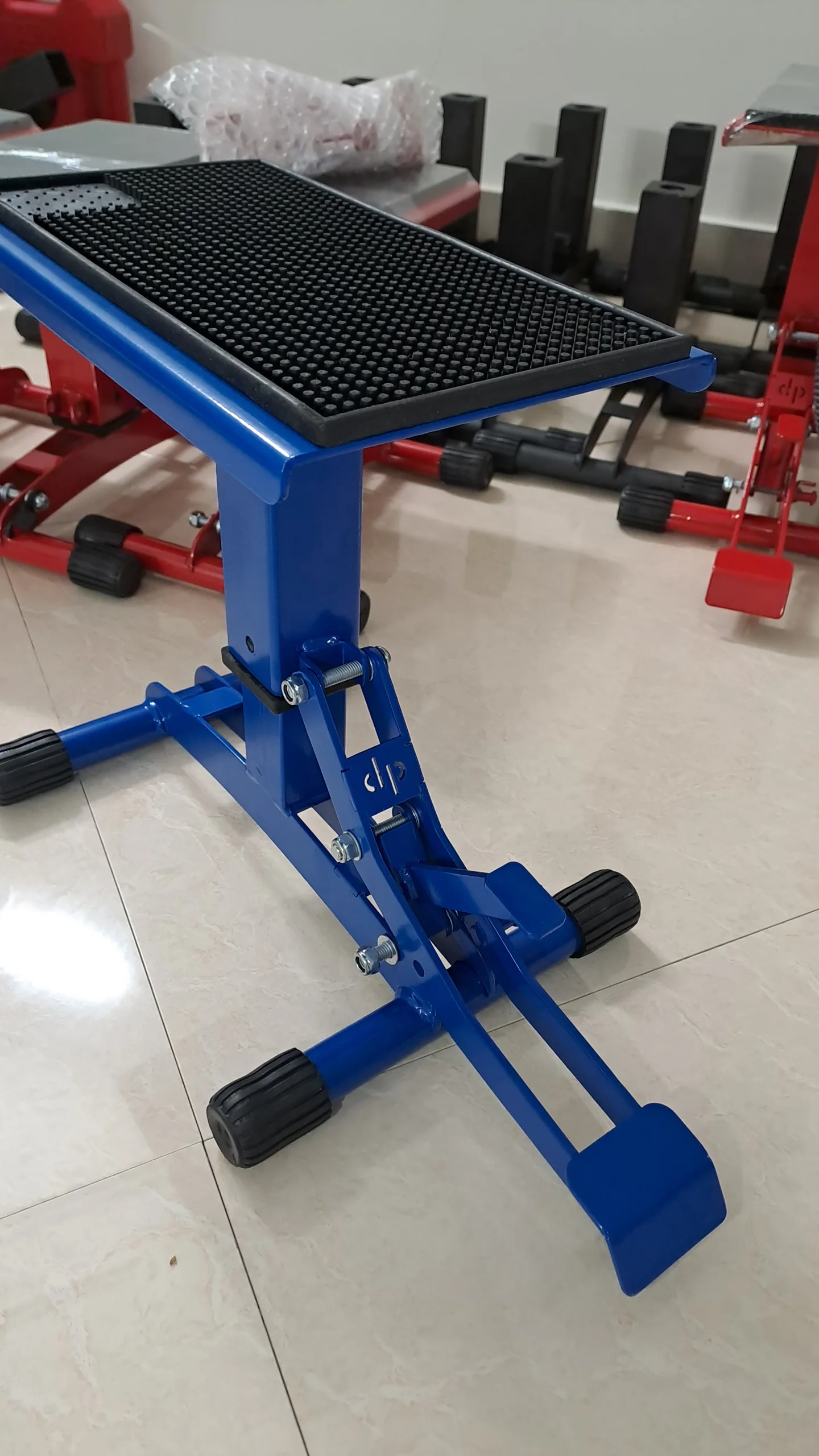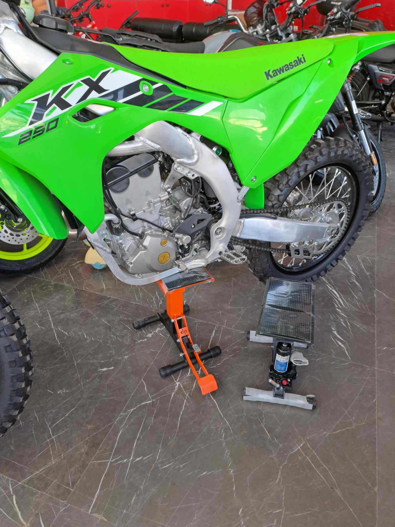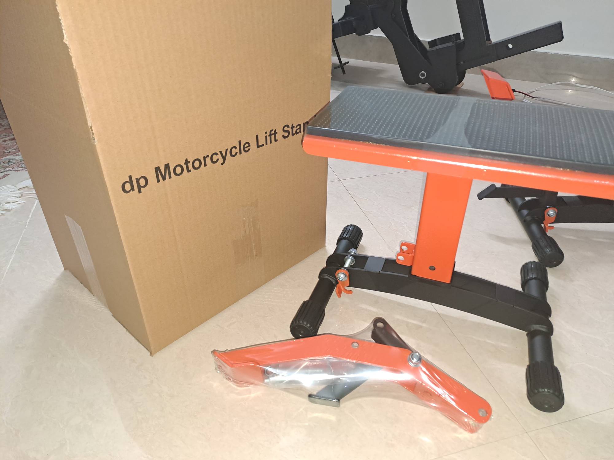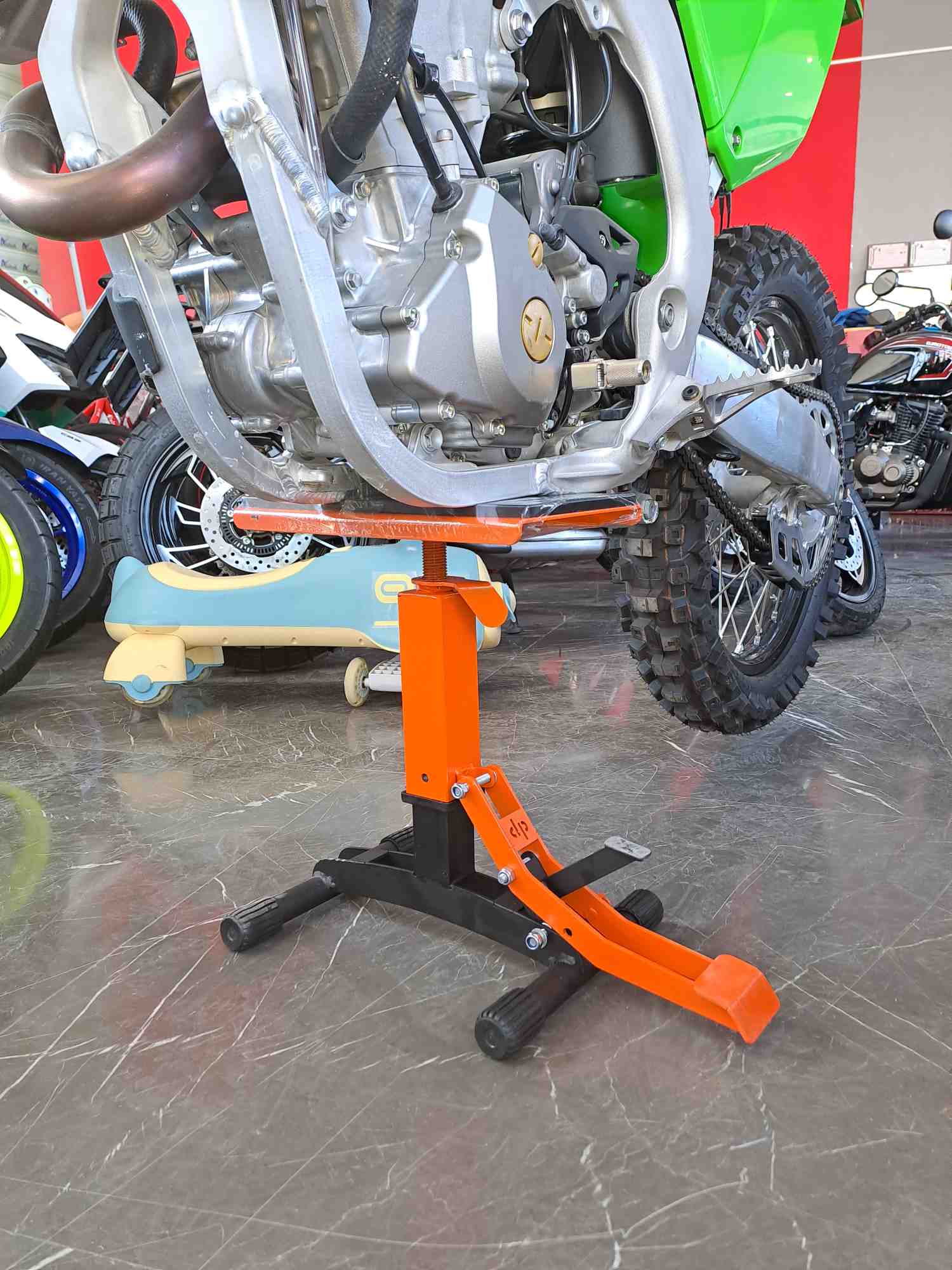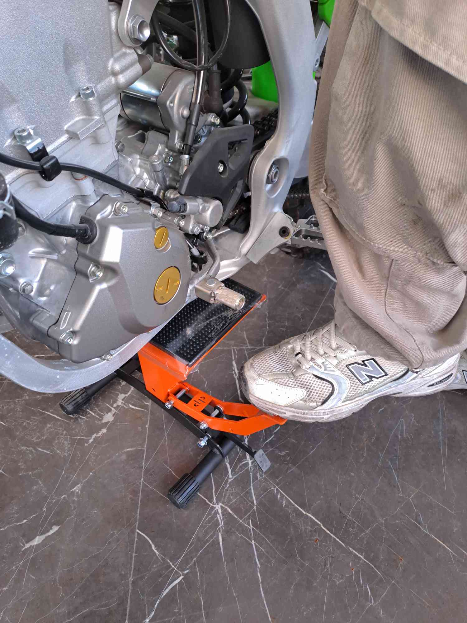 با فشردن پدال کوچک جک آزاد میشود و میتوان موتورسیکلت را پایین آورد